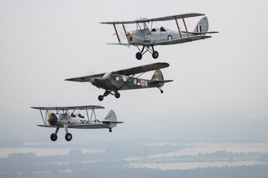 Uiteraard onder voorbehoud van het weer en de beschikaarheid van de vliegtuigen, zal onze formatie bestaan uit een Stearman, Chipmunk, Tiger Moth, en twee Piper Super Cubs.